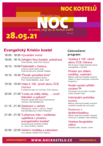I náš Kristův kostel se v pátek 28. 5. 2021 otevře veřejnosti v rámci tradiční Noci kostelů. Přístupný bude od 18 do 22 hodin a těšit se můžete na hudební vystoupení, projekci obrazů, představení varhan, komentovanou prohlídku, poznávací hru pro děti a další.